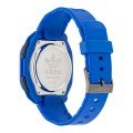 Este reloj marca Adidas tiene una caja de Resina con un diámetro de 45 mm y cuenta con una correa de Resina. Dentro de la caja se encuentra un mecanismo de Timex de alta calidad el cual esta protegido por un cristal Mineral.