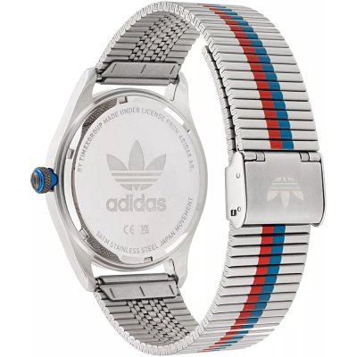Este reloj marca Adidas tiene una caja de Inox con un diámetro de 42 mm y cuenta con una correa de Inox. Dentro de la caja se encuentra un mecanismo de Timex de alta calidad el cual esta protegido por un cristal Mineral.