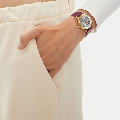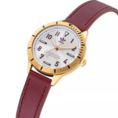 Este reloj marca Adidas tiene una caja de Inox con un diámetro de 36 mm y cuenta con una correa de piel. Dentro de la caja se encuentra un mecanismo de Timex de alta calidad el cual esta protegido por un cristal Mineral.