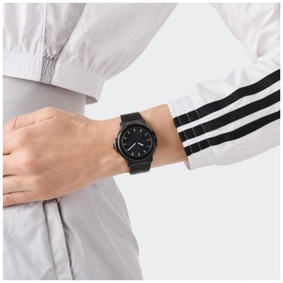 Este reloj marca Adidas tiene una caja de Inox con un diámetro de 41 mm y cuenta con una correa de Inox. Dentro de la caja se encuentra un mecanismo de Timex de alta calidad el cual esta protegido por un cristal Mineral.