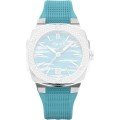 Esta correa de reloj de la :marca está hecha de goma de silicona y se adjunta al reloj mediante pasadores de resorte. La banda tiene un ancho de 21 mm. La correa no tiene montura recta, lo que significa que esta correa sólo es adecuada para los relojes que se indican a continuación.
