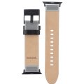 Esta correa de reloj de la :marca está hecha de cuero y se adjunta al reloj mediante pasadores con resorte de liberación rápida. La banda tiene un ancho de 22 mm y se cierra mediante un hebilla. La correa tiene una montura recta, lo que significa que esta correa es adecuada para todos los relojes de la Apple Watch con montura recta.
