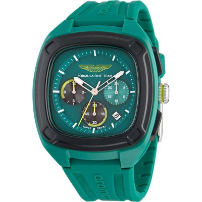 Este reloj marca Aston Martin tiene una caja de Resina con un diámetro de 44 mm y cuenta con una correa de Goma.