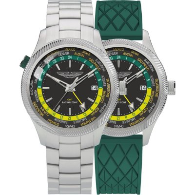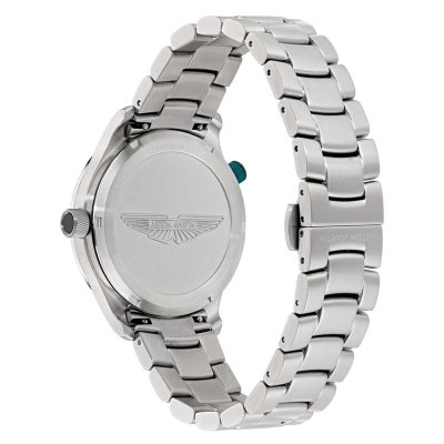 Este reloj marca Aston Martin tiene una caja de Inox con un diámetro de 41 mm y cuenta con una correa de Goma. Dentro de la caja se encuentra un mecanismo de Timex de alta calidad el cual esta protegido por un cristal Mineral.