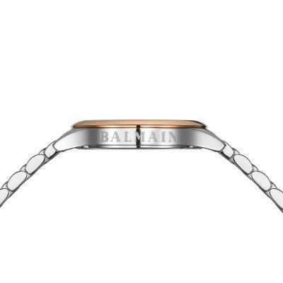 Este reloj marca Balmain tiene una caja de Inox con un diámetro de 29 mm y cuenta con una correa de Inox. Dentro de la caja se encuentra un mecanismo de ETA de alta calidad el cual esta protegido por un cristal Zafiro.