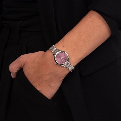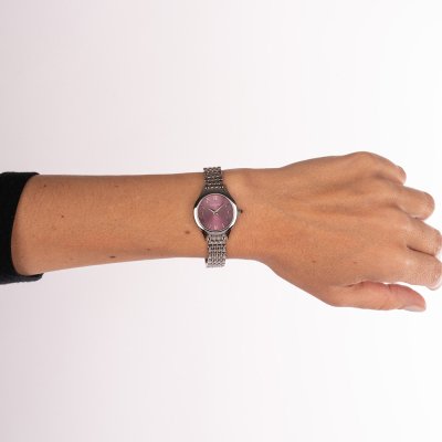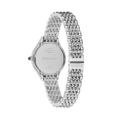 Este reloj marca Balmain tiene una caja de Inox con un diámetro de 25 mm y cuenta con una correa de Inox. Dentro de la caja se encuentra un mecanismo de ETA de alta calidad el cual esta protegido por un cristal Zafiro.