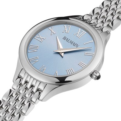 Este reloj marca Balmain tiene una caja de Inox con un diámetro de 29 mm y cuenta con una correa de Inox. Dentro de la caja se encuentra un mecanismo de ETA de alta calidad el cual esta protegido por un cristal Zafiro.