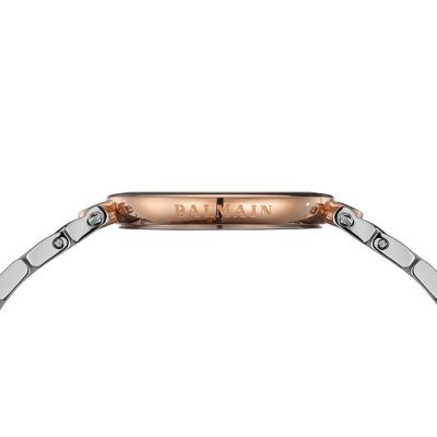 Este reloj marca Balmain tiene una caja de Inox con un diámetro de 29 mm y cuenta con una correa de Inox. Dentro de la caja se encuentra un mecanismo de ETA de alta calidad el cual esta protegido por un cristal Zafiro.