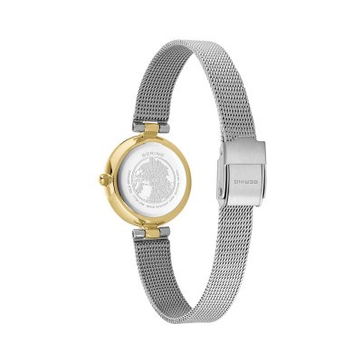 Este reloj marca Bering tiene una caja de Inox con un diámetro de 24 mm y cuenta con una correa de Inox. Dentro de la caja se encuentra un mecanismo de Miyota de alta calidad el cual esta protegido por un cristal Zafiro.