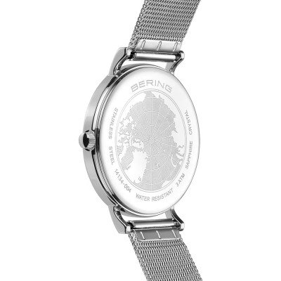 Este reloj marca Bering tiene una caja de Inox con un diámetro de 34 mm y cuenta con una correa de Inox. Dentro de la caja se encuentra un mecanismo de Miyota de alta calidad el cual esta protegido por un cristal Zafiro.