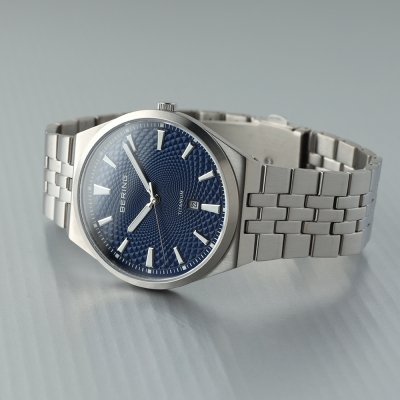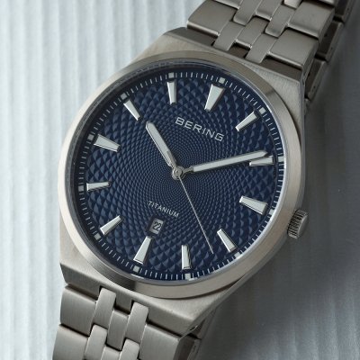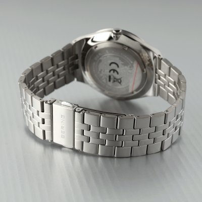 Este reloj marca Bering tiene una caja de Titanio con un diámetro de 41 mm y cuenta con una correa de Titanio. Dentro de la caja se encuentra un mecanismo de Ronda de alta calidad el cual esta protegido por un cristal Zafiro.
