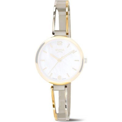 Esta correa de reloj de la :marca está hecha de titanio y se adjunta al reloj mediante pasadores de acero. La banda tiene un ancho de 11 mm y se cierra mediante un cierre desplegable con botones pulsadores. La correa no tiene montura recta, lo que significa que esta correa sólo es adecuada para los relojes que se indican a continuación.