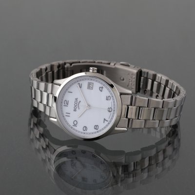 Este reloj marca Boccia tiene una caja de Titanio con un diámetro de 31 mm y cuenta con una correa de Titanio. Dentro de la caja se encuentra un mecanismo de Miyota de alta calidad el cual esta protegido por un cristal Zafiro.