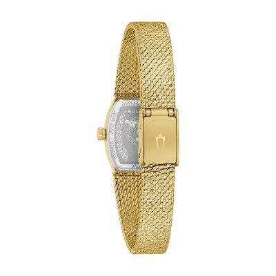 Este reloj marca Bulova tiene una caja de Inox con un diámetro de 17 mm y cuenta con una correa de Inox. Dentro de la caja se encuentra un mecanismo de Miyota de alta calidad el cual esta protegido por un cristal Zafiro.