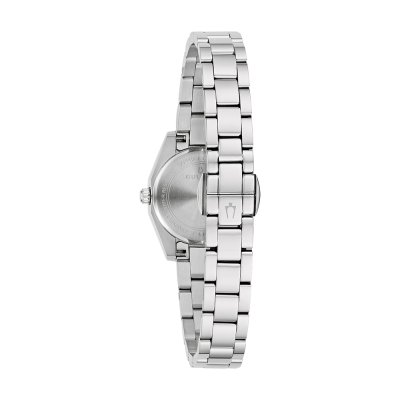 Este reloj marca Bulova tiene una caja de Inox con un diámetro de 23 mm y cuenta con una correa de Inox. Dentro de la caja se encuentra un mecanismo de Miyota de alta calidad el cual esta protegido por un cristal Zafiro.