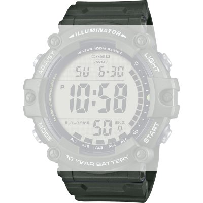 Esta correa de reloj de la :marca está hecha de resina y se adjunta al reloj mediante pasadores de resorte. La banda tiene un ancho de 27 mm y se cierra mediante un hebilla. La correa no tiene montura recta, lo que significa que esta correa sólo es adecuada para los relojes que se indican a continuación.