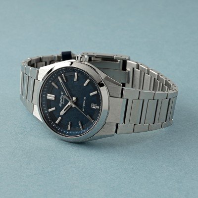 Este reloj marca Casio Edifice tiene una caja de Inox con un diámetro de 39 mm y cuenta con una correa de Inox. Dentro de la caja se encuentra un mecanismo de Casio de alta calidad el cual esta protegido por un cristal Zafiro.