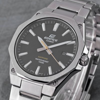 Este reloj marca Casio Edifice tiene una caja de Inox con un diámetro de 39.9 mm y cuenta con una correa de Inox. Dentro de la caja se encuentra un mecanismo de Casio de alta calidad el cual esta protegido por un cristal Zafiro.