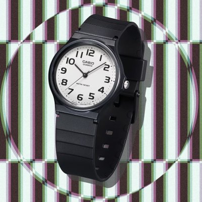 Este reloj marca Casio tiene una caja de Resina con un diámetro de 34.9 mm y cuenta con una correa de Resina. Dentro de la caja se encuentra un mecanismo de Ronda de alta calidad el cual esta protegido por un cristal Acrílico.