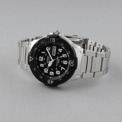 Este reloj marca Casio tiene una caja de Resina con un diámetro de 44.6 mm y cuenta con una correa de Inox. Dentro de la caja se encuentra un mecanismo de Casio de alta calidad el cual esta protegido por un cristal Acrílico.