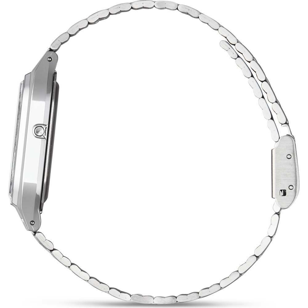 Este reloj marca Casio tiene una caja de Resina con un diámetro de 29.8 mm y cuenta con una correa de Inox. Dentro de la caja se encuentra un mecanismo de Casio de alta calidad el cual esta protegido por un cristal Acrílico.