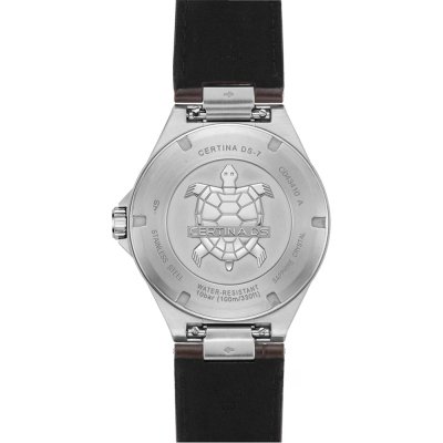 Este reloj marca Certina tiene una caja de Inox con un diámetro de 39 mm y cuenta con una correa de piel. Dentro de la caja se encuentra un mecanismo de ETA de alta calidad el cual esta protegido por un cristal Zafiro antirreflectante solitario.