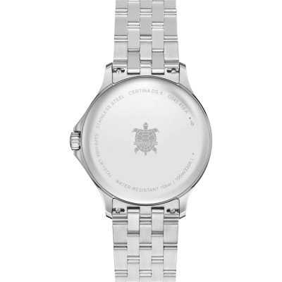 Este reloj marca Certina tiene una caja de Inox con un diámetro de 40 mm y cuenta con una correa de Inox. Dentro de la caja se encuentra un mecanismo de ETA de alta calidad el cual esta protegido por un cristal Zafiro antirreflectante solitario.