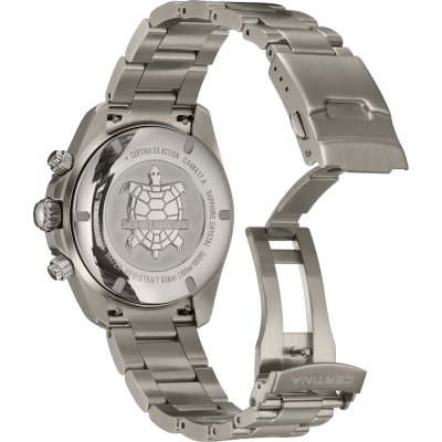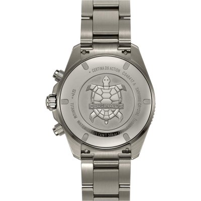 Este reloj marca Certina tiene una caja de Titanio con un diámetro de 42 mm y cuenta con una correa de Titanio. Dentro de la caja se encuentra un mecanismo de ETA de alta calidad el cual esta protegido por un cristal Zafiro antirreflectante solitario.
