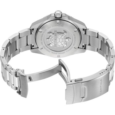 Este reloj marca Certina tiene una caja de Inox con un diámetro de 40 mm y cuenta con una correa de Inox. Dentro de la caja se encuentra un mecanismo de ETA de alta calidad el cual esta protegido por un cristal Zafiro antirreflectante solitario.