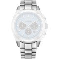 Esta correa de reloj de la :marca está hecha de acero inoxidable y se adjunta al reloj mediante pasadores de resorte. La banda tiene un ancho de 20 mm y se cierra mediante un cierre desplegable con botones pulsadores. La correa no tiene montura recta, lo que significa que esta correa sólo es adecuada para los relojes que se indican a continuación.