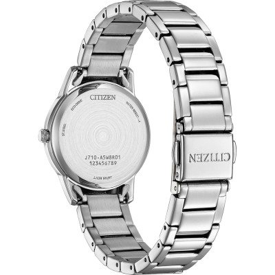 Este reloj marca Citizen tiene una caja de Inox con un diámetro de 29.4 mm y cuenta con una correa de Inox. Dentro de la caja se encuentra un mecanismo de Citizen de alta calidad el cual esta protegido por un cristal Mineral.