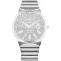 Esta correa de reloj de la :marca está hecha de acero inoxidable y se adjunta al reloj mediante pasadores de acero. La banda tiene un ancho de 20 mm y se cierra mediante un cierre desplegable con botones pulsadores. La correa no tiene montura recta, lo que significa que esta correa sólo es adecuada para los relojes que se indican a continuación.