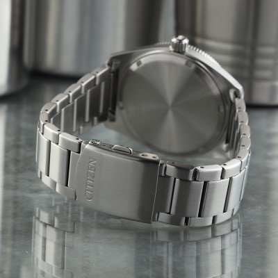 Este reloj marca Citizen tiene una caja de Inox con un diámetro de 43 mm y cuenta con una correa de Inox. Dentro de la caja se encuentra un mecanismo de Citizen de alta calidad el cual esta protegido por un cristal Mineral.