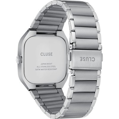 Este reloj marca Cluse tiene una caja de Inox con un diámetro de 35 mm y cuenta con una correa de Inox. Dentro de la caja se encuentra un mecanismo de Miyota de alta calidad el cual esta protegido por un cristal Mineral.