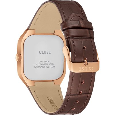 Este reloj marca Cluse tiene una caja de Inox con un diámetro de 35 mm y cuenta con una correa de piel. Dentro de la caja se encuentra un mecanismo de Miyota de alta calidad el cual esta protegido por un cristal Mineral.