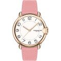 Este reloj marca Coach tiene una caja de Inox con un diámetro de 36 mm y cuenta con una correa de piel. Dentro de la caja se encuentra un mecanismo de Seiko de alta calidad el cual esta protegido por un cristal Mineral.