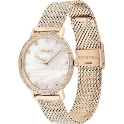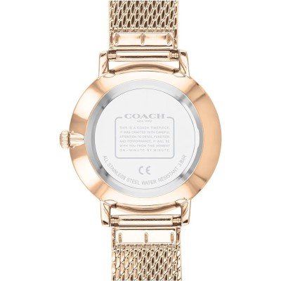 Este reloj marca Coach tiene una caja de Inox con un diámetro de 35 mm y cuenta con una correa de Inox. Dentro de la caja se encuentra un mecanismo de Seiko Instruments Inc. de alta calidad el cual esta protegido por un cristal Mineral.