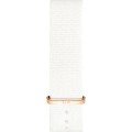 Esta correa de reloj de la :marca está hecha de textil y se adjunta al reloj mediante pasadores de resorte. La banda tiene un ancho de 18 mm y se cierra mediante un hebilla. La correa tiene una montura recta, lo que significa que esta correa es adecuada para todos los relojes de la Daniel Wellington con montura recta.