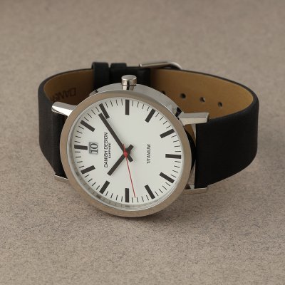 Este reloj marca Danish Design tiene una caja de Titanio con un diámetro de 40 mm y cuenta con una correa de piel.