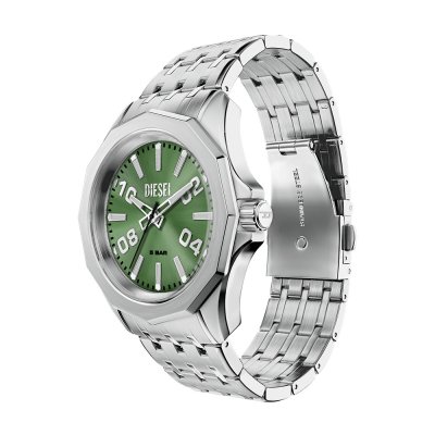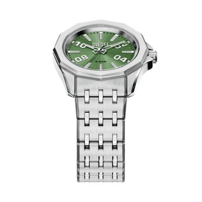 Este reloj marca Diesel tiene una caja de Inox con un diámetro de 44 mm y cuenta con una correa de Inox. Dentro de la caja se encuentra un mecanismo de Miyota de alta calidad el cual esta protegido por un cristal Mineral.