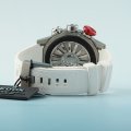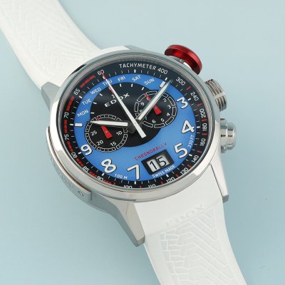 Este reloj marca Edox tiene una caja de Titanio con un diámetro de 48 mm y cuenta con una correa de Goma. Dentro de la caja se encuentra un mecanismo de Ronda de alta calidad el cual esta protegido por un cristal Zafiro.