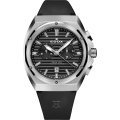Este reloj marca Edox tiene una caja de Inox con un diámetro de 43 mm y cuenta con una correa de Goma. Dentro de la caja se encuentra un mecanismo de Ronda de alta calidad el cual esta protegido por un cristal Zafiro.