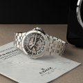 Este reloj marca Edox tiene una caja de Inox con un diámetro de 40 mm y cuenta con una correa de Inox. Dentro de la caja se encuentra un mecanismo de Sellita de alta calidad el cual esta protegido por un cristal Zafiro.
