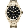 Este reloj marca Edox tiene una caja de Inox con un diámetro de 33 mm y cuenta con una correa de Inox. Dentro de la caja se encuentra un mecanismo de Ronda de alta calidad el cual esta protegido por un cristal Zafiro.