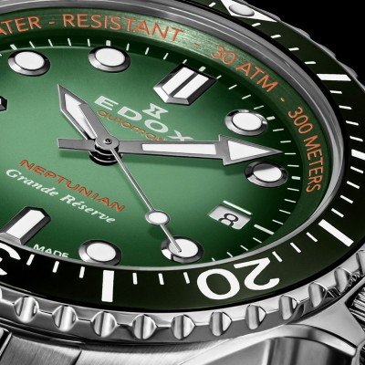 Inspirado originalmente en el SkyDiver de principios de la década de 1970, el Neptunian Grande Reserve es un moderno reloj de buceo con impresionantes características técnicas adecuado para actividades subacuáticas. Con una impresionante resistencia al agua de 30 ATM, este reloj está construido para soportar la presión. La robusta caja de acero inoxidable garantiza su durabilidad, mientras que su elegante diseño lo hace adecuado tanto para los deportes acuáticos como para la vida diaria.