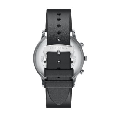 Este reloj marca Emporio Armani tiene una caja de Inox con un diámetro de 42 mm y cuenta con una correa de piel. Dentro de la caja se encuentra un mecanismo de Miyota de alta calidad el cual esta protegido por un cristal Mineral.