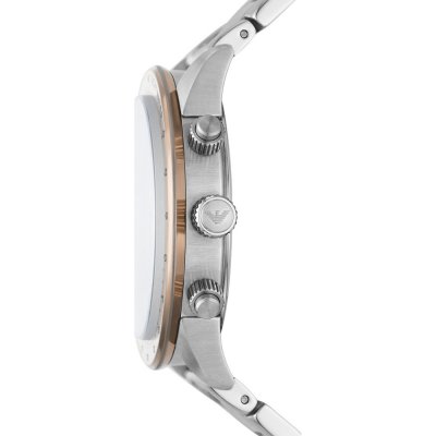 Este reloj marca Emporio Armani tiene una caja de Inox con un diámetro de 43 mm y cuenta con una correa de Inox. Dentro de la caja se encuentra un mecanismo de Miyota de alta calidad el cual esta protegido por un cristal Mineral.