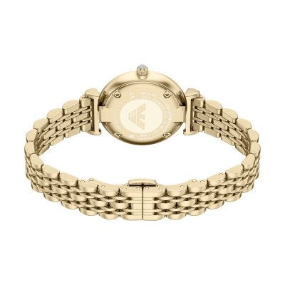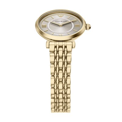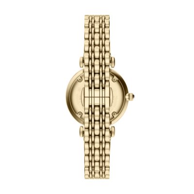 Este reloj marca Emporio Armani tiene una caja de Inox con un diámetro de 32 mm y cuenta con una correa de Inox. Dentro de la caja se encuentra un mecanismo de Seiko Instruments Inc. de alta calidad el cual esta protegido por un cristal Mineral.