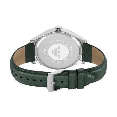 Este reloj marca Emporio Armani tiene una caja de Inox con un diámetro de 41 mm y cuenta con una correa de piel. Dentro de la caja se encuentra un mecanismo de Miyota de alta calidad el cual esta protegido por un cristal Mineral.