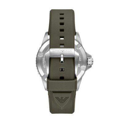 Este reloj marca Emporio Armani tiene una caja de Inox con un diámetro de 42 mm y cuenta con una correa de Goma. Dentro de la caja se encuentra un mecanismo de Miyota de alta calidad el cual esta protegido por un cristal Mineral.